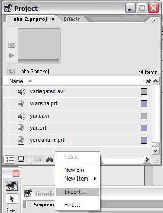 בשביל לייבא סרט לTime line כדי להתחיל לערוך אותו עושים את הצעדים הבאים: