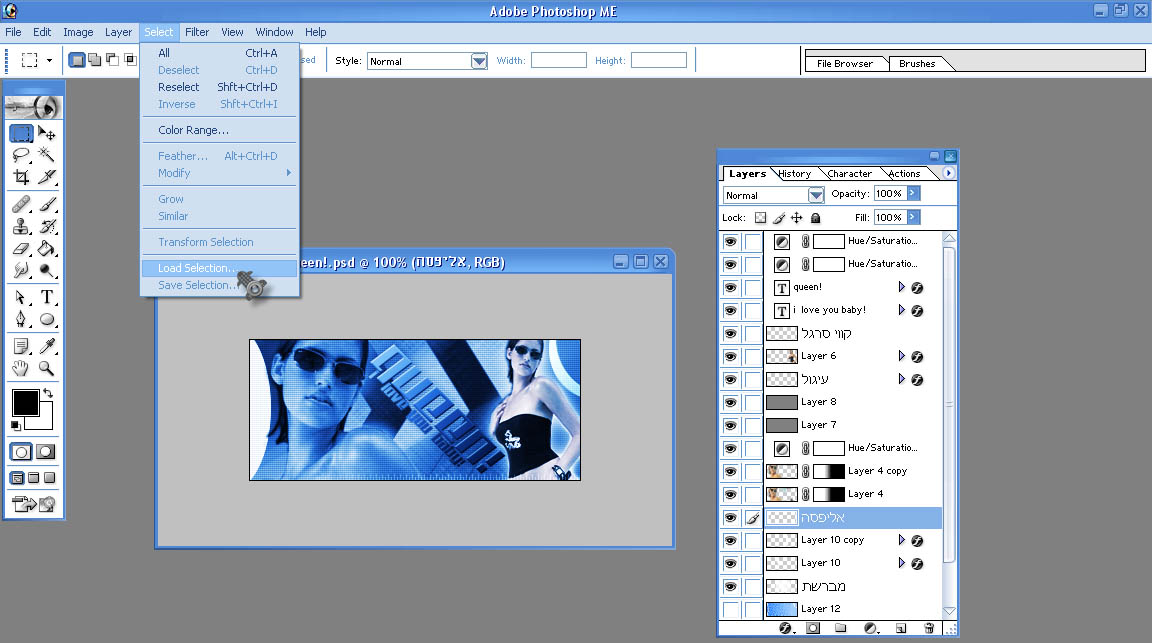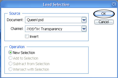 עכשיו נלך ל <כחול>Select > Load Selection</כחול> כשאנחנו על הלייר של האליפסה