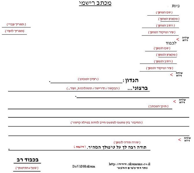 תמונה של סיגנון כתיבה של מכתב רישמי.