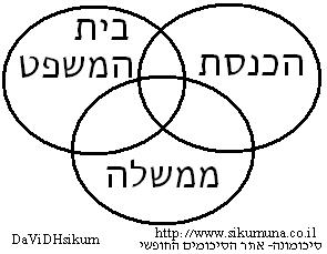 מפתלים את הכוח הגדול לכמה רשויות- המחוקקת {הכנסת}, השופטת {מערכת בתי המשפט} והמבצעת {הממשלה}.